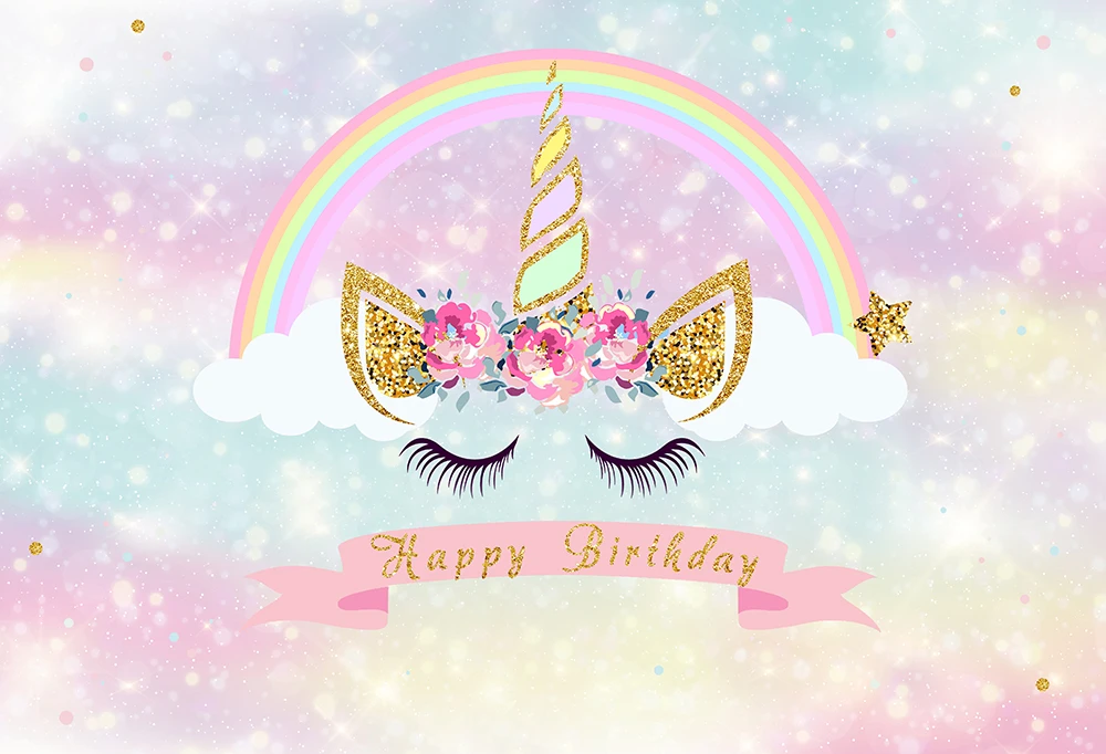 Unicorn Backdrop for Birthday Party Pink Magic Sky Floral Rainbow Newborn Baby Shower Photography Background Photo Booth W-812